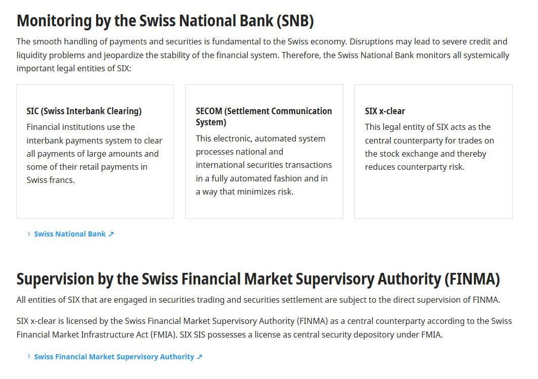 На нем можно найти сведения о регуляции. Авторы ссылаются на Швейцарский национальный банк и FINMA: