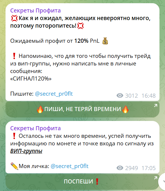 ТГ-канал «Секреты Профита» не вызывает доверия.