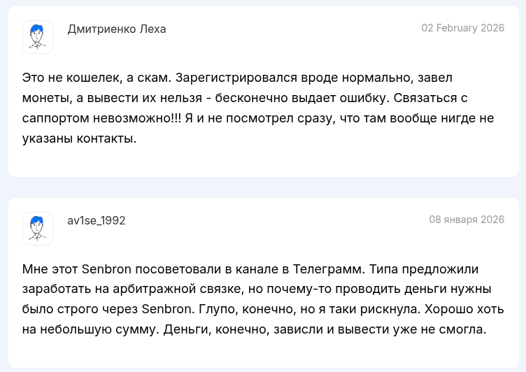 Реальный фидбек в сети полностью подтверждает мошенническую природу площадки. Негативные отзывы о Senbron Com появляются с завидной регулярностью и раскрывают всю суть работы скамеров. Пострадавшие массово жалуются на заморозку балансов сразу после пополнения депозита и отказы вернуть даже первоначальные вложения.