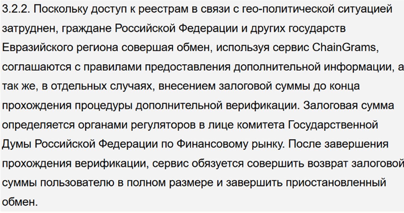 В случае, если у руководства возникнут сомнения в чистоте крипты, заявка блокируется до выяснения личности. Разработчики оставляют за собой право запросить любые документы или заморозить операцию на неопределенный срок.