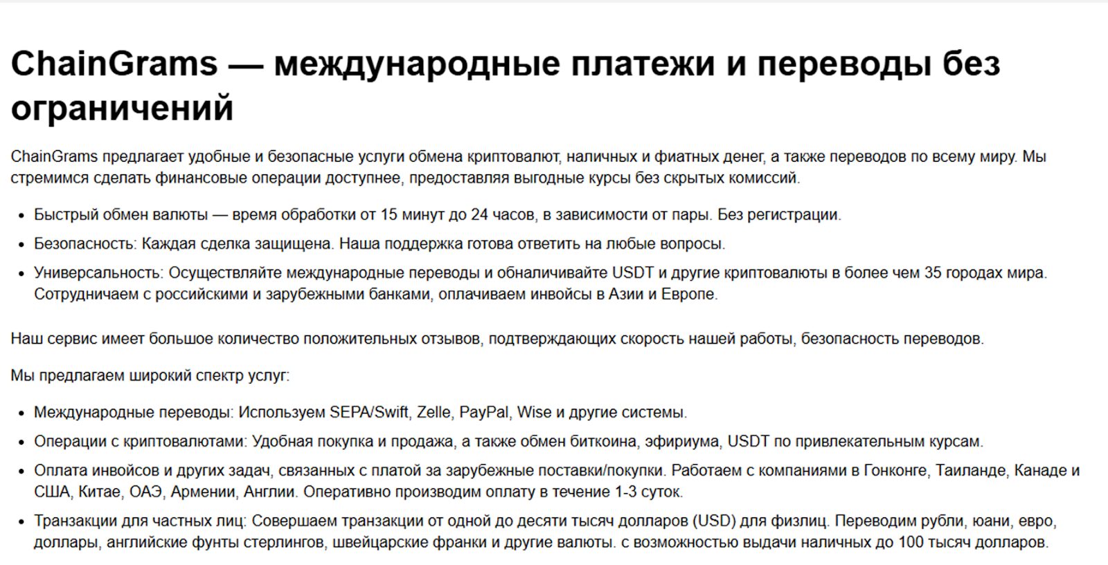 Обзор обменника Sensorista: отзывы, безопасность, как на самом деле работает сервис Chaingrams ex