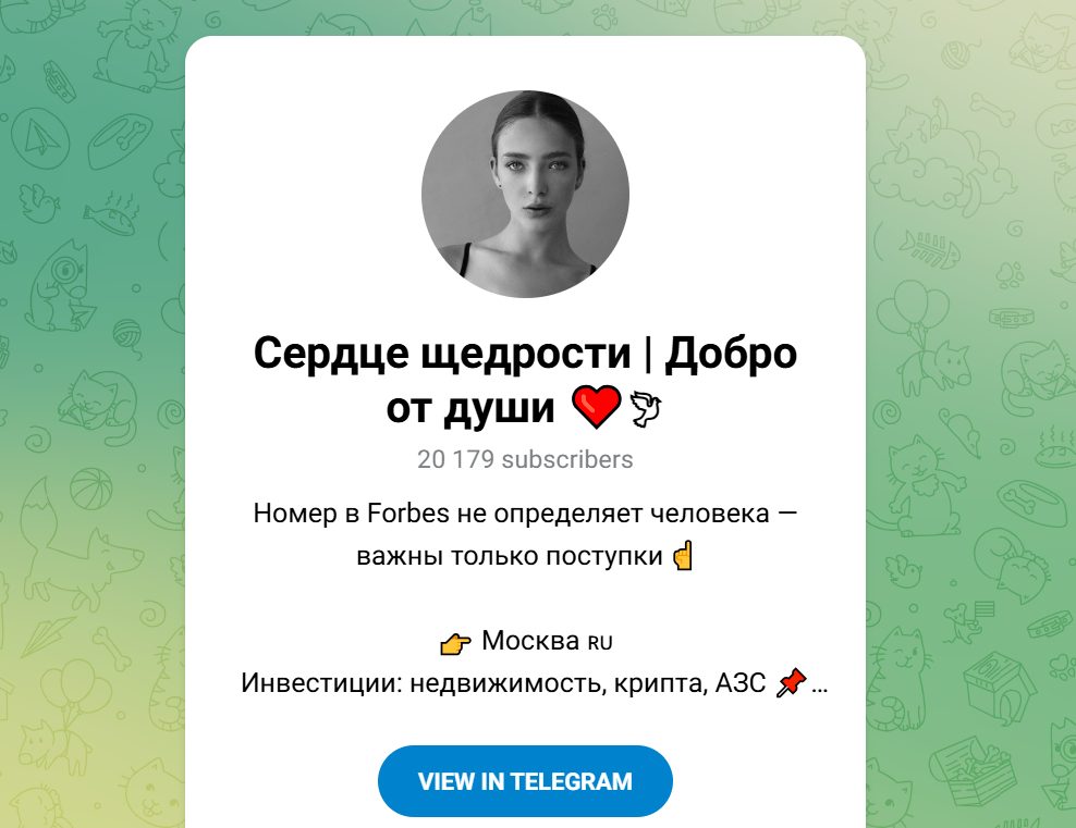 На момент анализа 19 декабря 2025 г. у канала около 20 тысяч подписчиков. В описании акцент на щедрость, благотворительность, инвестиции в недвижимость, крипту и АЗС, а также фраза о том, что номер в Forbes не определяет человека, важны поступки.