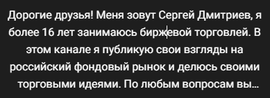 У трейдера Сергея Дмитриева, возможно, есть аудитория, которой интересны его мысли, воспринимающие его аналитику в положительном ключе.