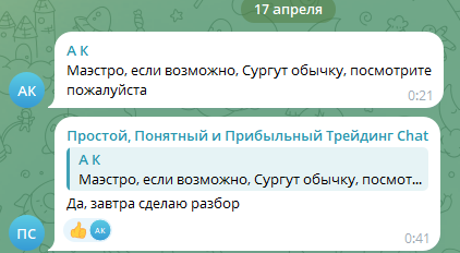 В открытых источниках нет пользователей, довольных качеством контента, отсутствуют и негативные оценки. Под постами в телеграмм-канале отдельные пользователи задавали Сергею вопросы, вероятно, рассчитывая на его профессиональные навыки теханализа.