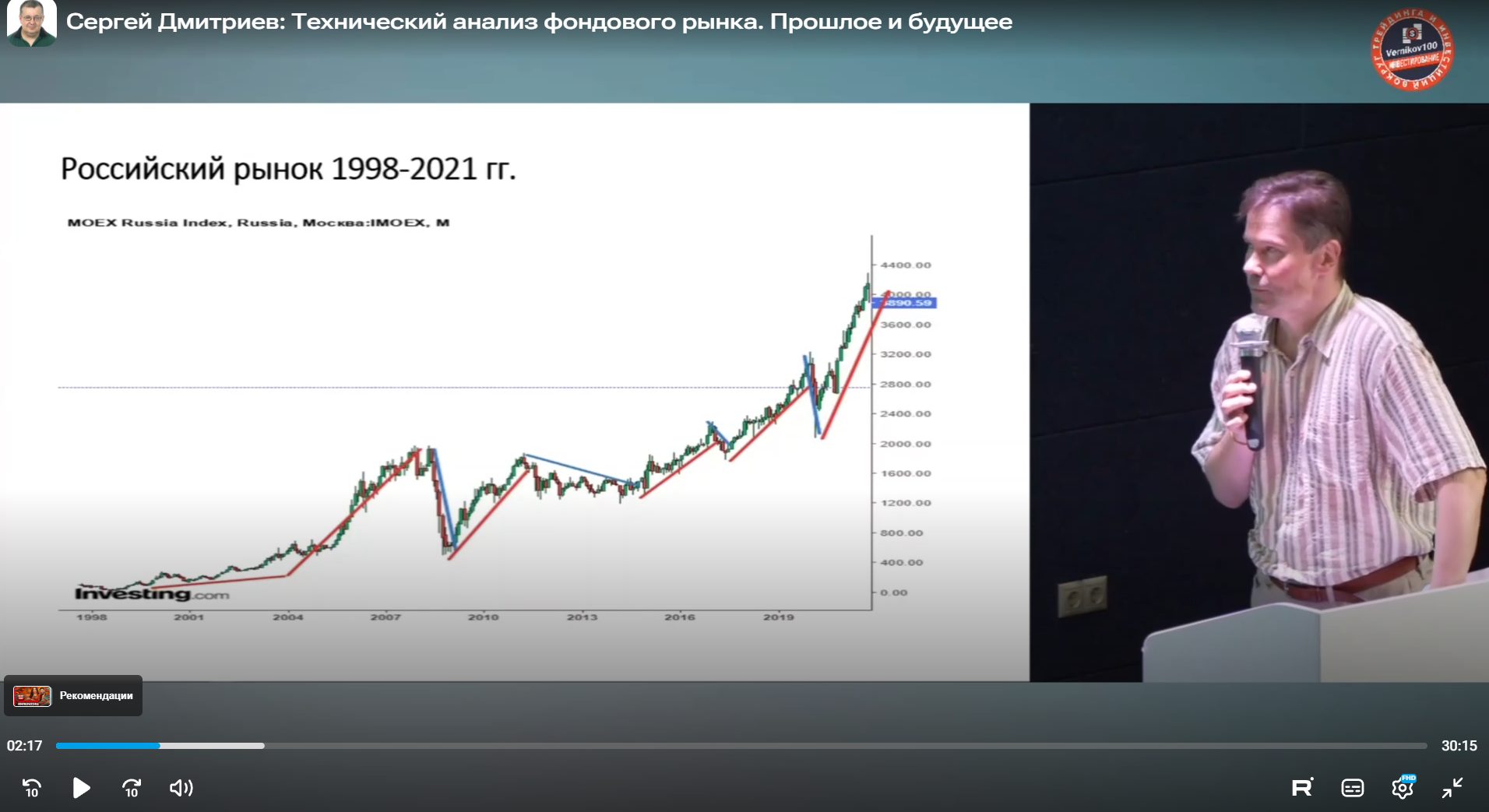 В Интернете удалось найти публичное выступление Дмитриева на конференции «Вокруг трейдинга и инвестиций» за 2025 год. Темой доклада он выбрал технический анализ фондового рынка, разбор инвестиционных инструментов.