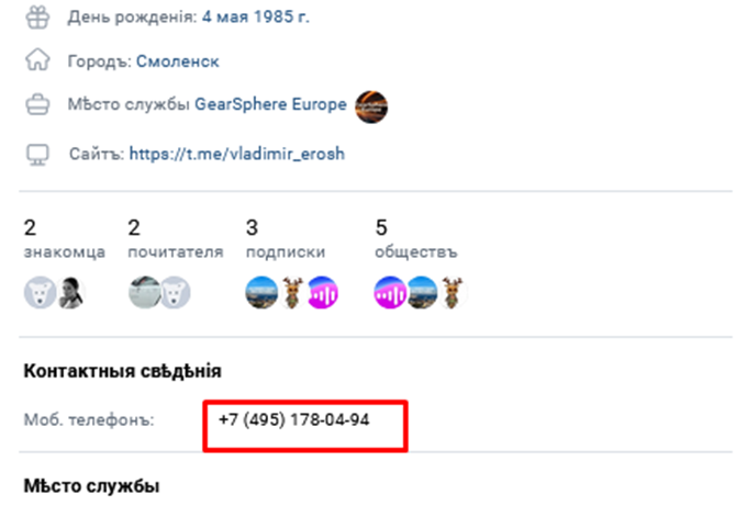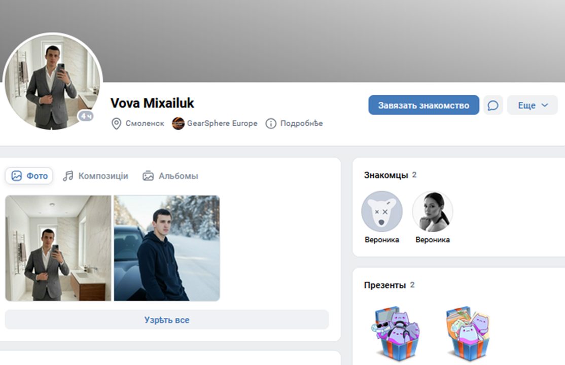 У Владимира Ероша на персональной странице указан город проживания Смоленск и телефон для связи – 74951780494. Больше никакой информации о нем нет.