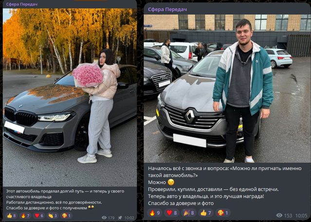 Телеграм канал «Сфера передач» отзывы реальных покупателей пока не получил. Этот проект обещает подбор и выкуп автомобилей в Европе. Потенциальным покупателям говорят о низких ценах, коротких сроках пригона и полном документальном оформлении в России. Но никакой юридической информации о компании нет, имеются все признаки того, что магазин работает нелегально и занимается обманом.