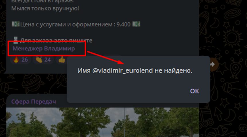 Продажа машин из Европы через ТГ магазины является рискованной. «Сфера Передач» ничем не доказывает реальность предлагаемых услуг, вероятнее всего, работает на нелегальной основе. Все это повышает шансы потери денег без возможности их возврата.