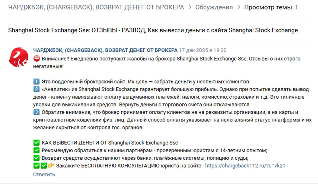 На российских форумах отзывов на Shanghai stock exchange нет, точнее нет их на мошенническую копию биржи. Но зато стали появляться первые обзоры от экспертов, в которых они рассказывают о нечестности проекта.
