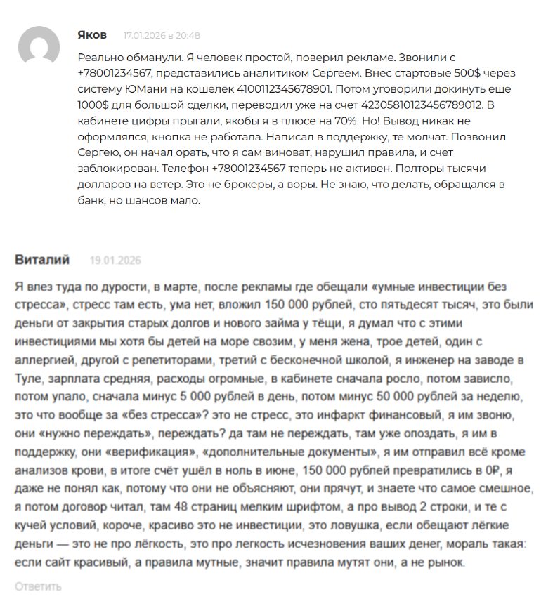 После уплаты средств связь с поддержкой прекращается навсегда. Другие пользователи жалуются на то, что баланс в личном кабинете демонстрирует рост для создания иллюзии успешной торговли. Но при попытке вывести прибыль система выдает ошибки или требует повторных пополнений. В результате вложенные деньги теряются без возможности возврата.