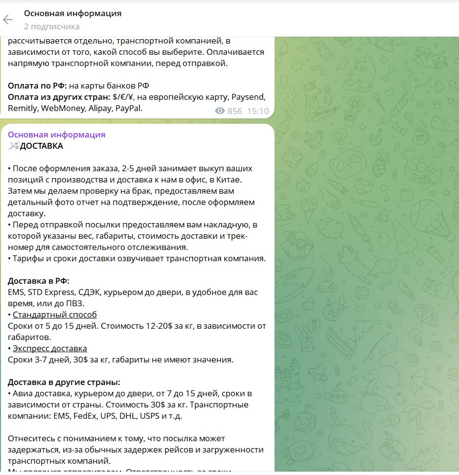 Условия поставок товаров из Китая в ТГ канале Skandal by generals