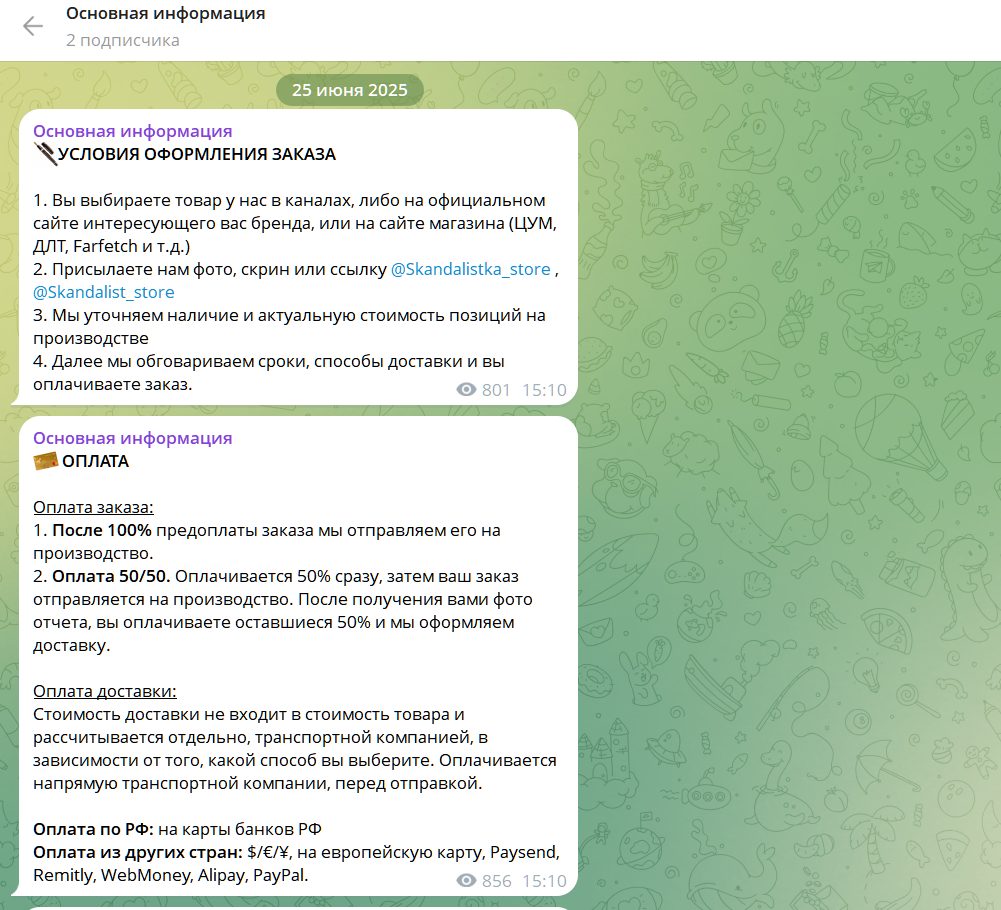 Какие про покупки в ТГ канале Skandal by generals отзывы