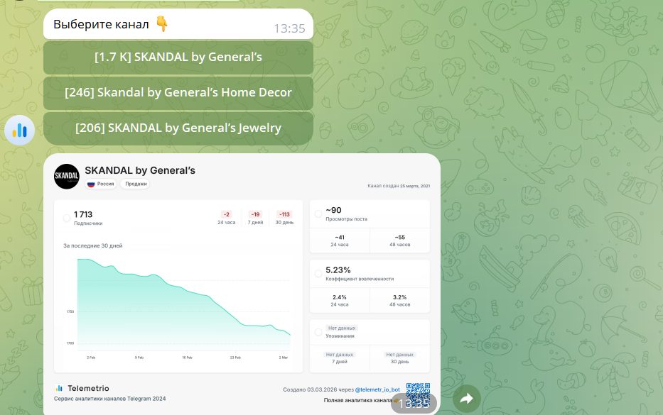 Заявленное количество подписчиков на основном канале 1713 – накрутка трафика. Читают посты в этом канале всего 5% аудитории. Хотя ТГ проект создан в 2021 году, активная раскрутка этой схемы обмана началась летом 2025 года.
