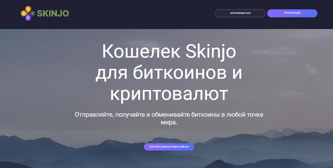 Сервис предлагал работу с биткоином и другими криптовалютами. На главной странице skinjo com красовался громкий слоган о возможности отправлять, получать и обменивать крипту по всему миру. Звучит вроде неплохо. Но дальше начинаются странности.