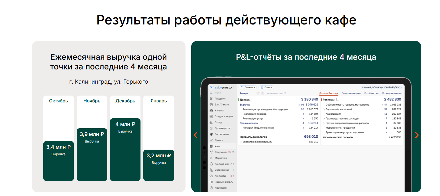 - действующая сеть кафе, никаких репутационных ударов или жалоб;