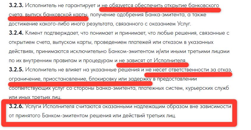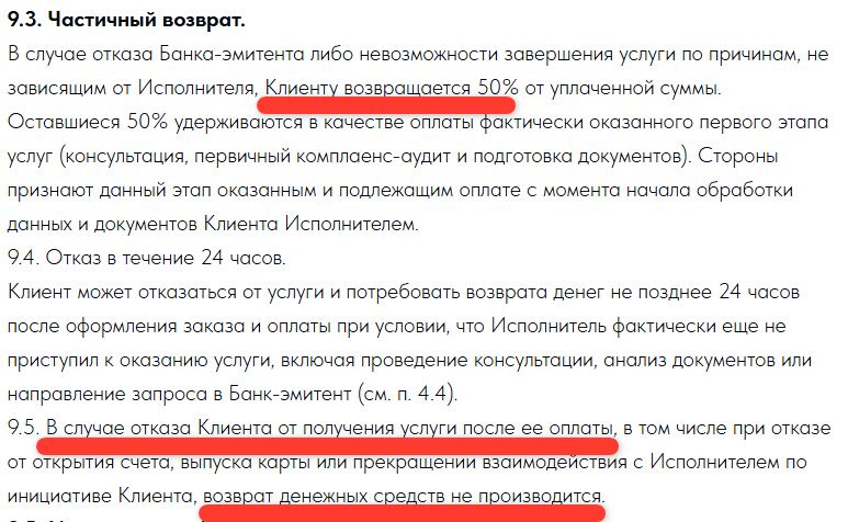 По сути, вы платите от 36 до 100 тыс. рублей за попытку открыть счет, но в случае неудачи сервис присваивает 50% оплаты себе.