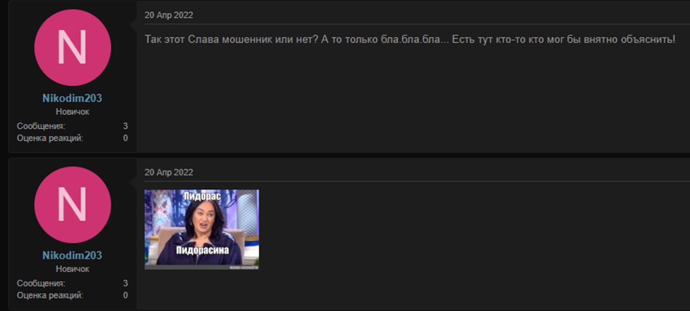 Пользователи скептически относятся к деятельности Славы и считают, что сотрудничество с ним чревато потерей денег.