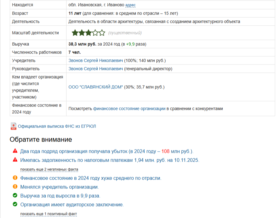 В результате исследования деятельности эмитента мы выявили следующие факты. ООО «СлавПроект» существует с 04 декабря 2014 года. Руководителем организации является Звонов Сергей Николаевич. Он же руководит ООО «Славянский Дом». Финансовое состояние ООО «СлавПроект» далеко от идеала. Два года подряд организация получала убытки, имела задолженность по налоговым платежам. Стоит ли доверять свои деньги не слишком надежному эмитенту остается вопросом.
