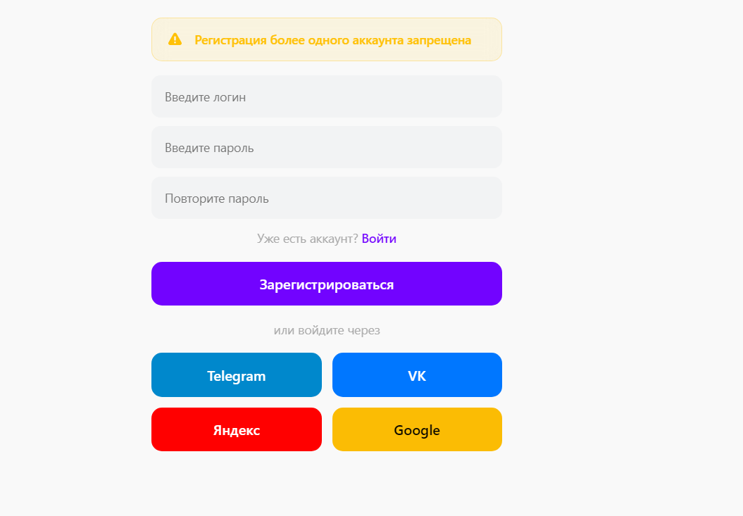 1. определиться с методом регистрации: через тг, VK, аккаунт в Гугл, Yandex;