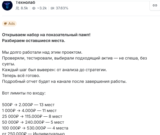Достоверных и подробных отзывов о «Технолаб» практически нет в сети. Однако, если бы у сервиса действительно были успешные клиенты и сильные результаты, хотя бы некоторые из них делились бы опытом на профильных форумах. Это показывает, что большая часть из почти 8,5 тыс подписчиков канала – явная накрутка.