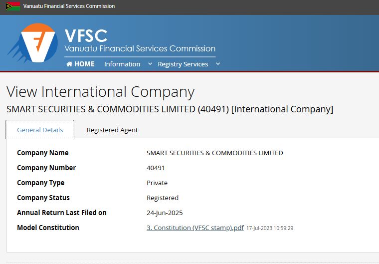 | Юридическое лицо | Smart Securities and Commodities Limited |