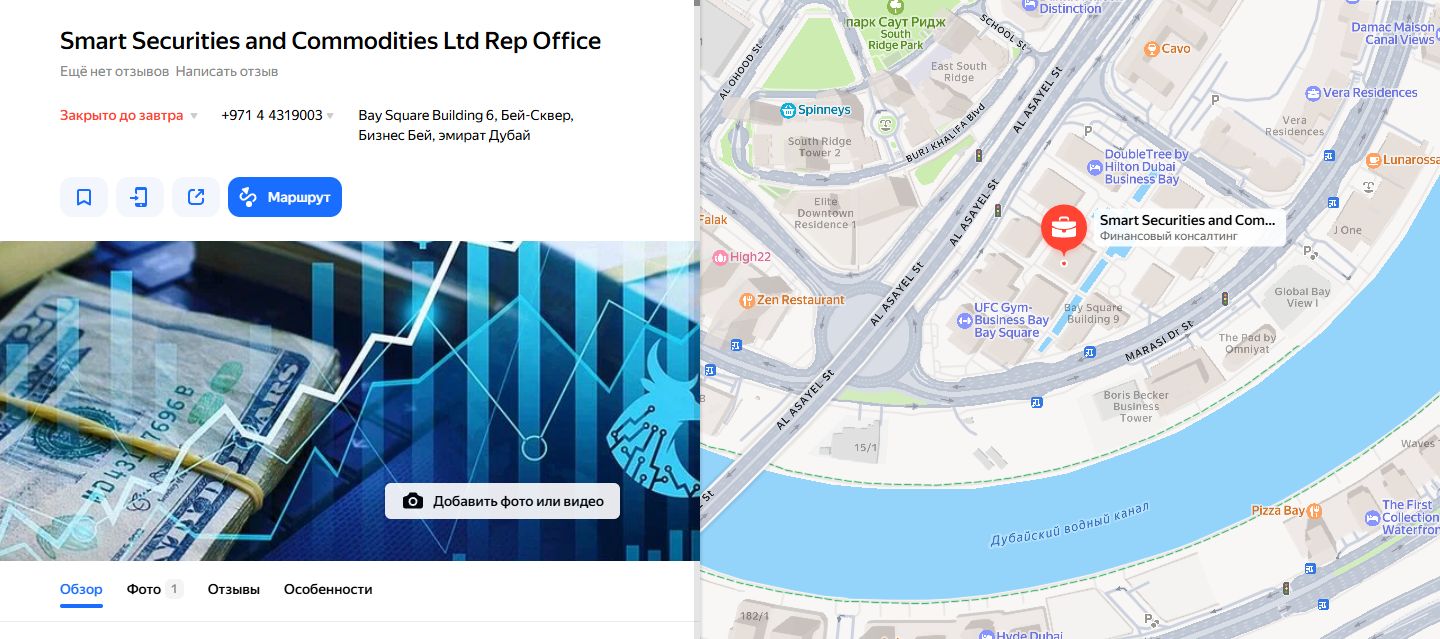 Офис Smartfx broker отслеживается на картах по адресу 403, Здание 6, Bay Square, район Business Bay, Дубай, ОАЭ.