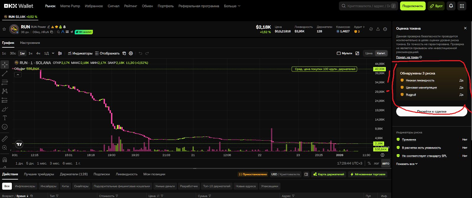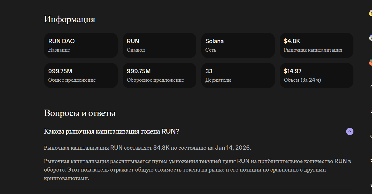 Игровой токен RUN DAO «упал» и надежно продолжает удерживать нисходящую траекторию с 20 декабря 2025 года. Поэтому доверие к игре, основанной на данном токене, низкое. Риск потерять деньги очень высокий.