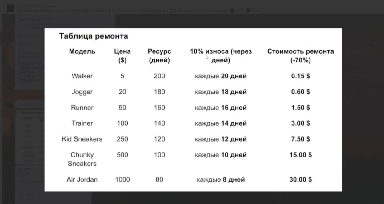 - Кроссовки за 5 USD дают доход от 1 до 3% в день.