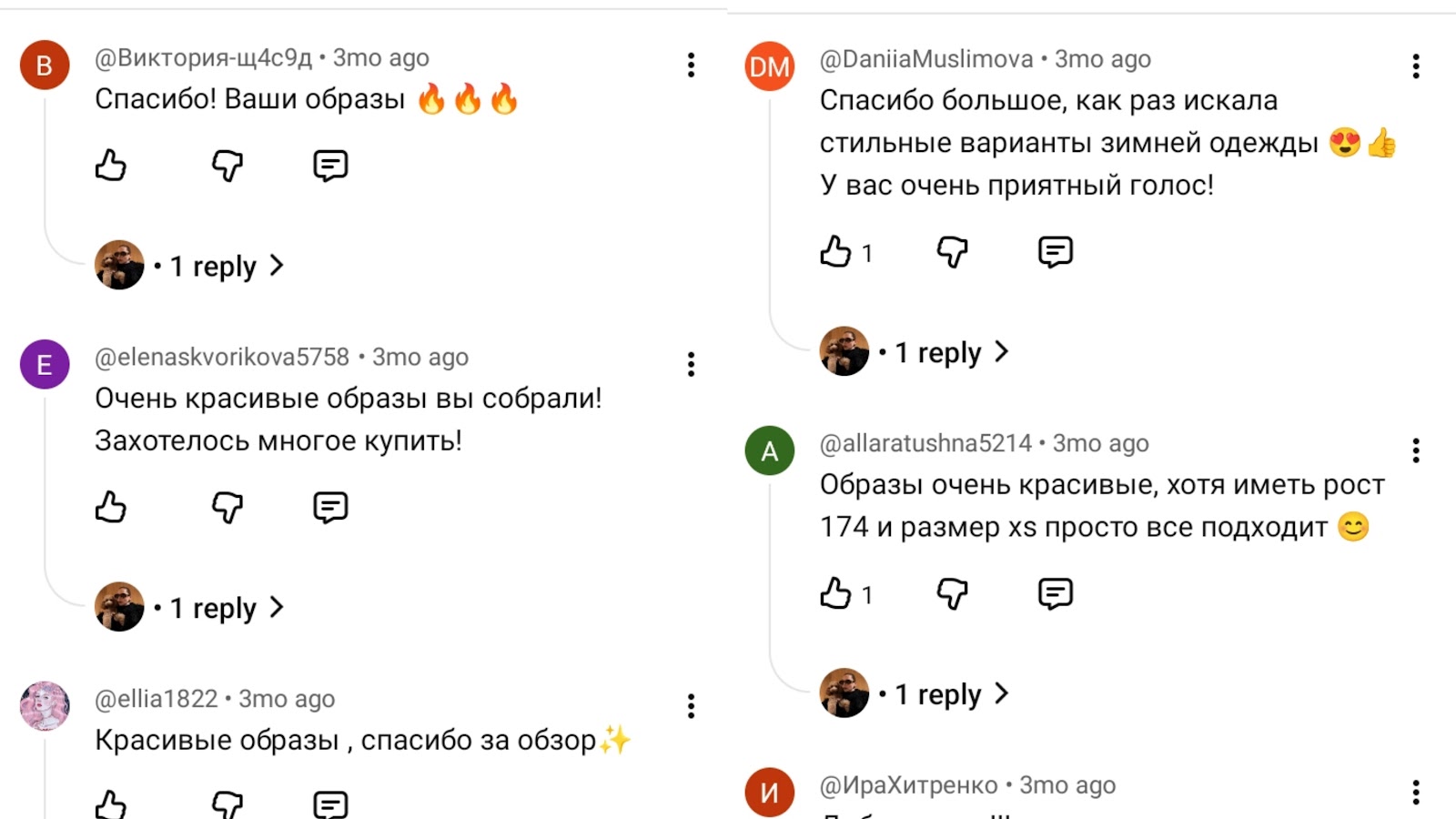В Телеграмм канале и других соцсетях София Захарова оставляет открытыми комментарии. Часто подписчики благодарят за стильные образы.
