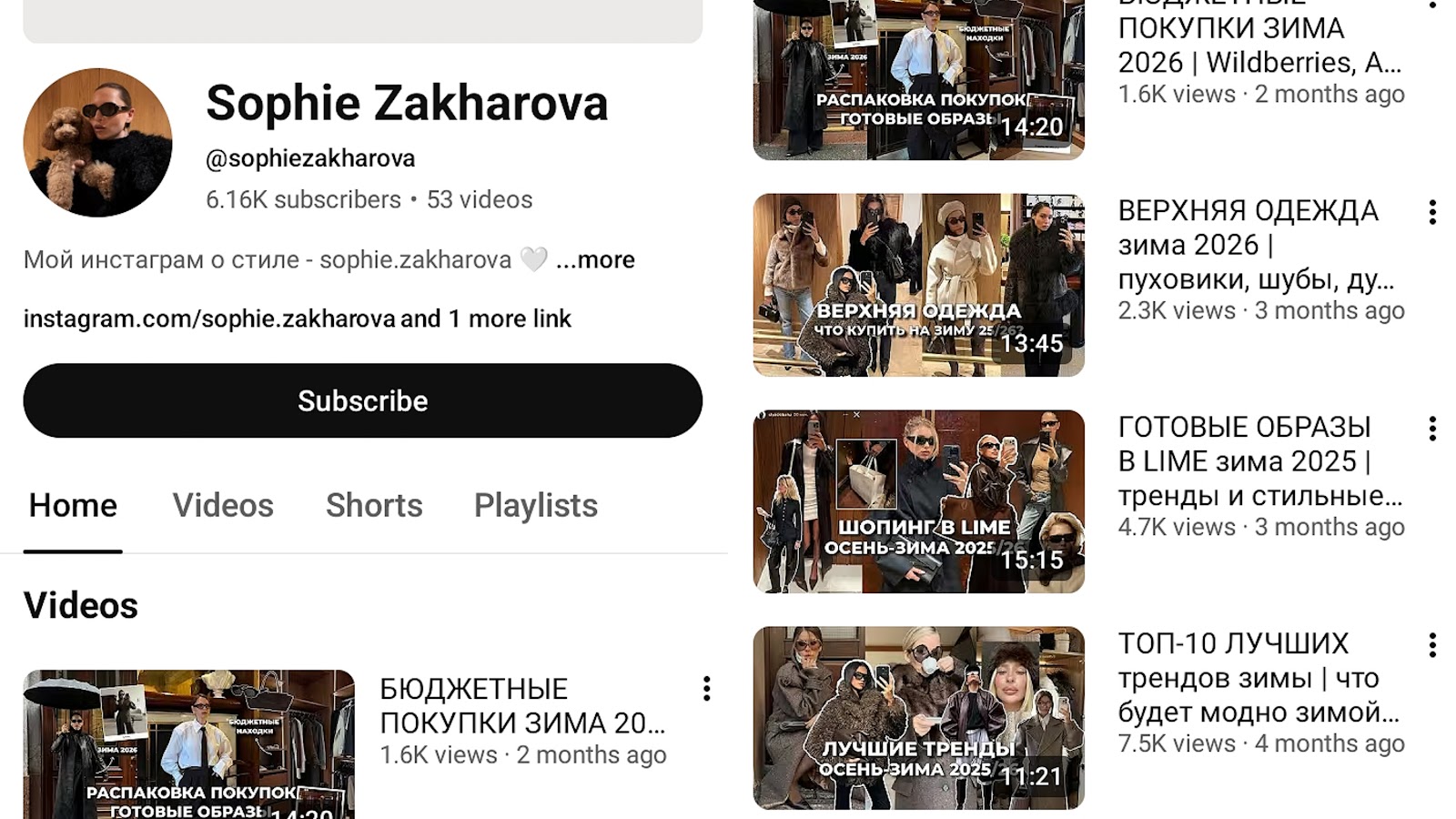 Здесь размещено 53 видео, посвященных советам по бюджетным покупкам. Девушка регулярно транслирует свой шоппинг, делится стильными находками.
