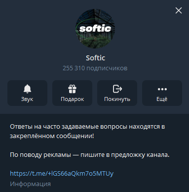 Softic — максимально сомнительный Telegram-канал. Пользователям кидают непроверенные файлы, в части из которых есть майнеры. Отключать антивирус или не сканировать ПК после установки софта может быть слишком опасно.