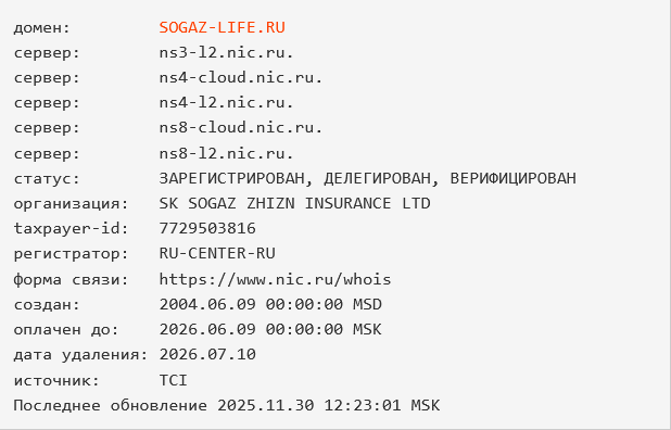 В этом же году было создано и доменное имя платформы «Согаз Жизнь» www sogaz life ru, как показала проверка сервисом Whois.