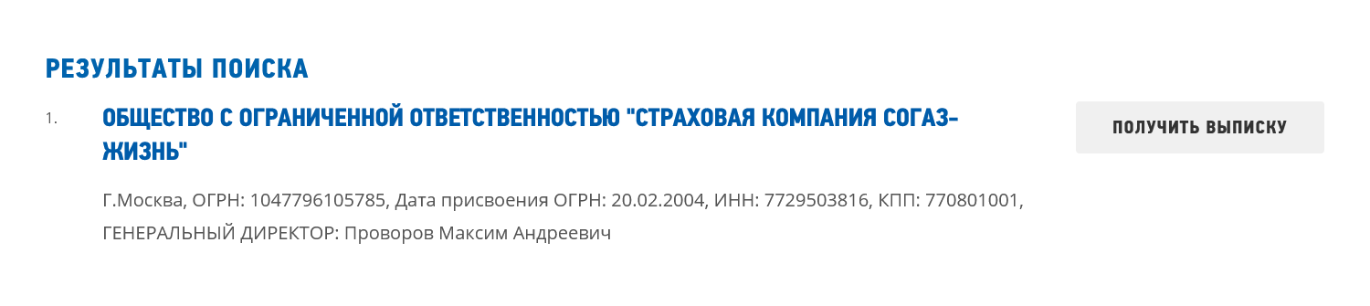 На странице компании в интернете прописана информация, которая позволяет провести проверку законной деятельности фирмы. Указав на сайте ФНС ИНН, удалось установить, что страховая работает с 2004 года.