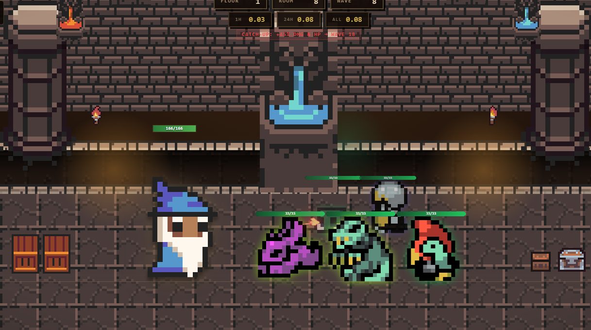В игре можно прокачивать атаку, защиту, выносливость и удачу, а после сотой волны открывается система мастерства, которая позволяет усилить боевые характеристики или повысить шанс нахождения редких предметов.
