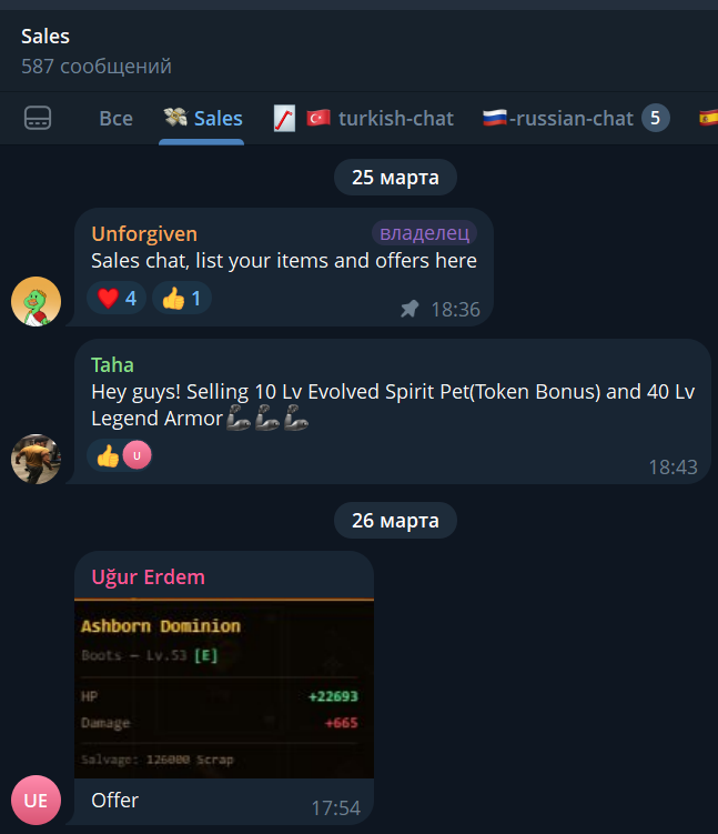 В группе Телеграмм с ником SolSiege есть несколько чатов для разных стран, в том числе и для России, а общее количество участников превышает 500 человек. Пользователи в основном задают вопросы о предметах и обсуждают разные стратегии игры.