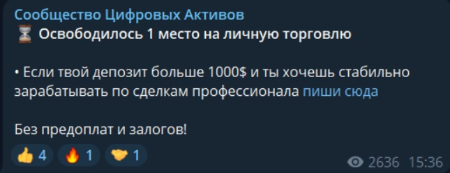 Отзывы о паблике в ТГ под названием «Сообщество Цифровых Активов»