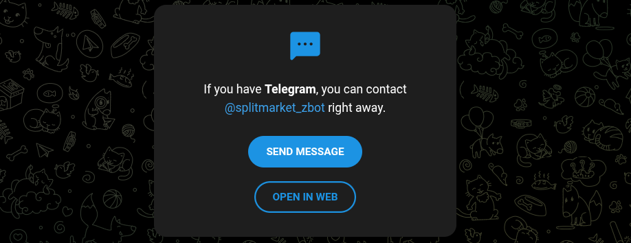 - Нет отчетности по продажам. Подсчитать эффективность хотя бы примерно не выйдет, потому что команда телеграмм магазина Split Market максимально скрывает о себе информацию.
