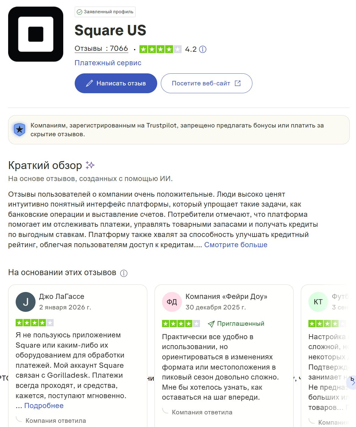 Отзывы о сервисе Square