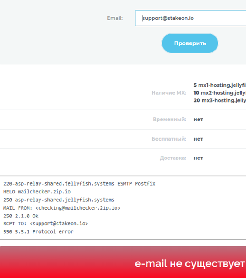 Для связи предлагается только онлайн-чат на сайте и электронная почта support stakeon io. Но проверка email показывает, что адрес недействительный. Месторасположение офиса и телефоны не указаны.