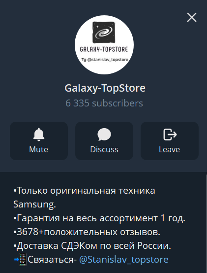 Основной акцент в тг-магазине «Станислав топ стор» делается на линейке гаджетов Galaxy. Площадка позиционируется как магазин, в котором клиенты всегда смогут найти очень выгодные предложения. Также указывается, что раскупаются товары предельно быстро, поэтому не стоит откладывать решение на долгое время. Часто можно встретить предложения не только ниже рыночной стоимости в несколько раз, но при этом на них еще будет действовать акция 2 по цене 1.
