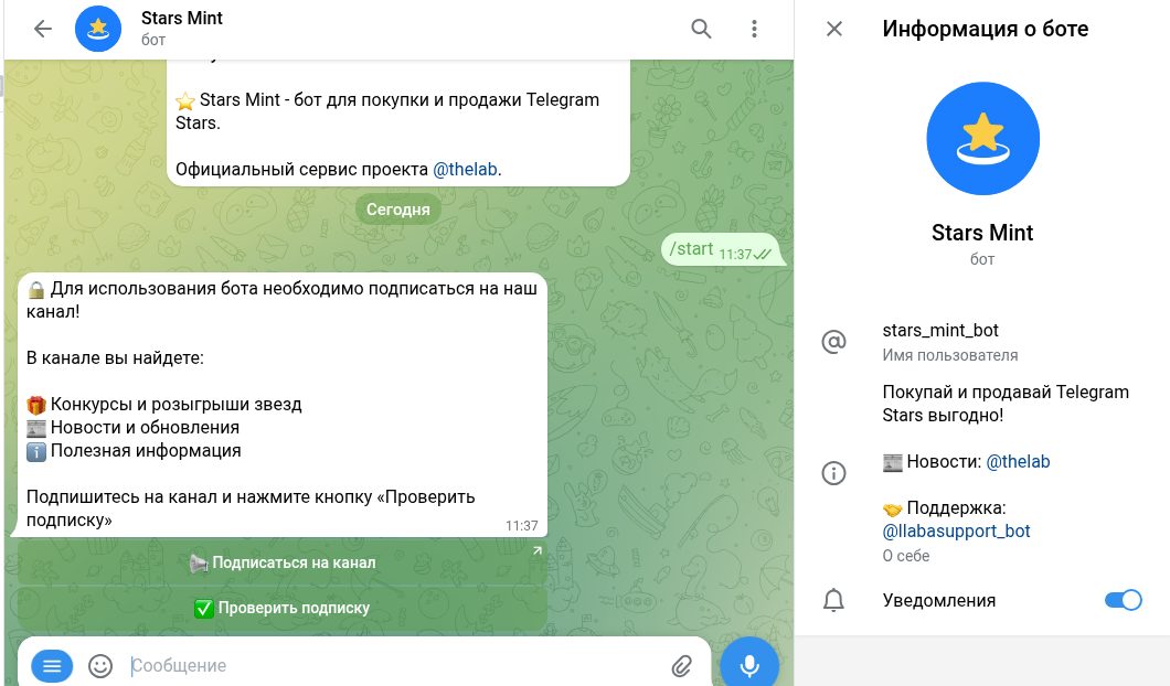 Stars Mint Bot: отзывы о боте для покупки и продажи Telegram Stars, обзор условий, насколько безопасен