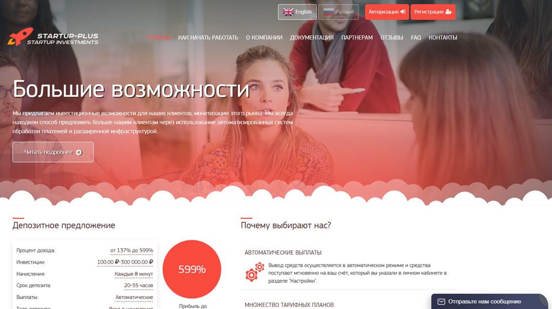 Обзор официального сайта Startup plus cc
