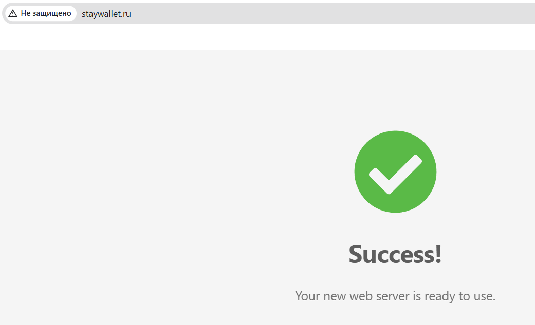 Если же все равно попытаться перейти на ресурс, появится сообщение, что новый веб-сервер готов к использованию и больше никакой информации нет, поэтому проверить проект «Стай Воллет» напрямую не получится.