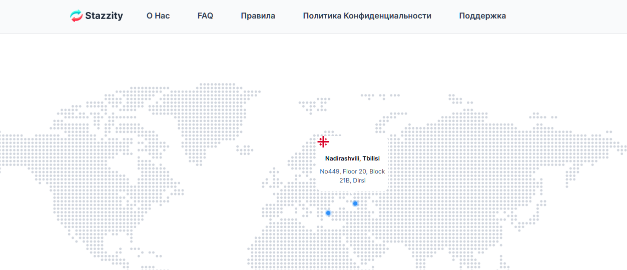Stazzity com обменник не указывает свои финансовые резервы, не зарегистрирован на крупных сайтах мониторинга, таких как BestChange. Неизвестен корреспондентский счет компании, нет контактных данных для связи с администрацией сервиса.