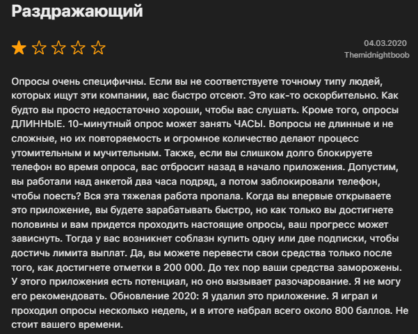 Другие жалуются на ограничения доступа к опросам Stormx – хотя в открытом доступе компания про них вообще ничего не говорит. Также критикуется минимальный лимит на вывод – якобы недостижимая сумма.