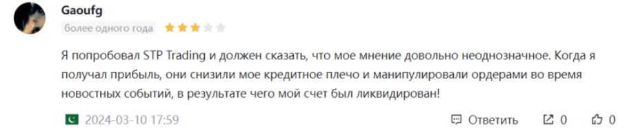 Что пишут в отзывах о брокере STP Trade LTD