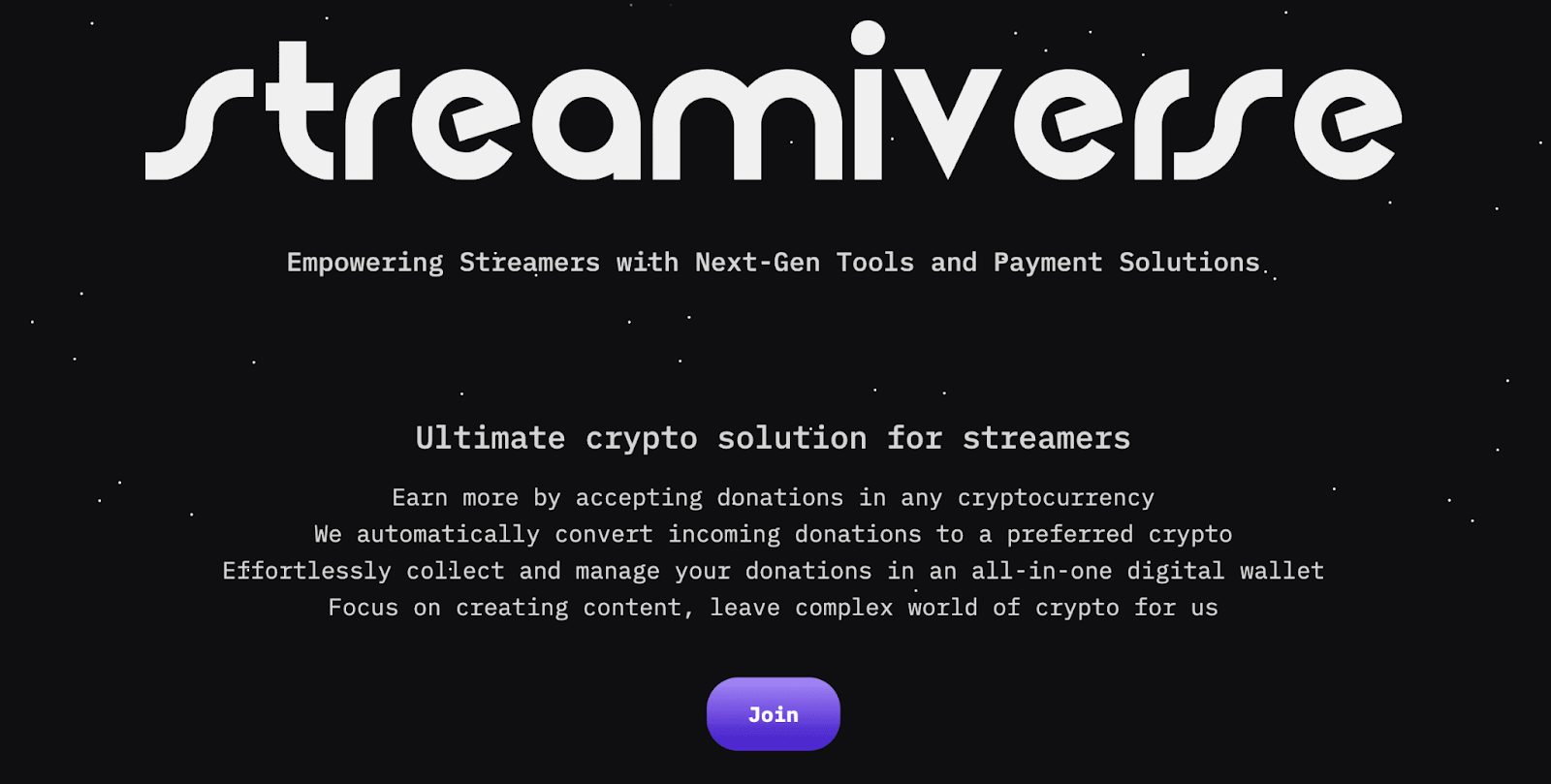 Streamiverse io предлагает услуги криптоплатежей, которые адаптированы для стримеров и создателей контента. Сервис позволяет принимать пожертвования в любой криптовалюте из любой точки мира через множество вариантов оплаты. Включено более 20 методов оплаты и свыше 300 криптовалют на странице донатов.