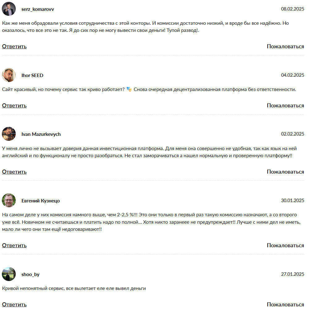 - скрытые комиссии выше заявленных 2-2,5%, задержки вывода средств и проблемы с доступом к аккаунту;
