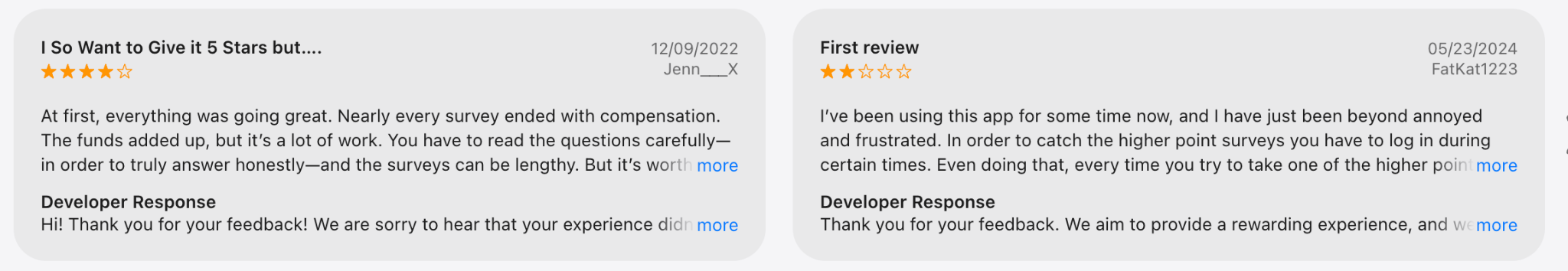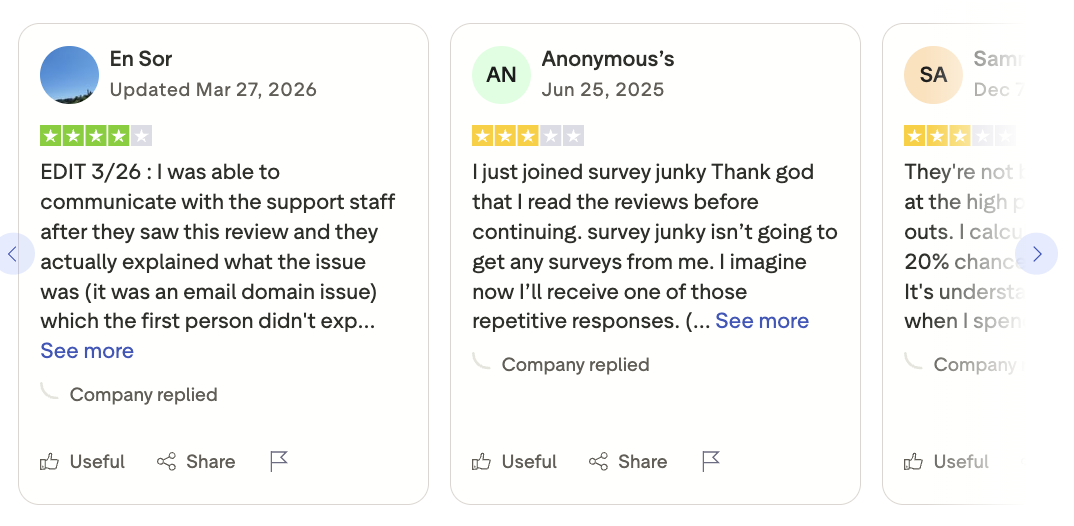 Отзывы о заработке на Survey Junkie встречаются самые разные. Часть пользователей отмечает, что на старте все идет гладко, но со временем становится очевидно, что это требует много времени и внимательности. При этома даже позитивные комментарии идут с оговорками, что процесс требует усидчивости. Также участники жалуются на отказы в опросах, необходимость «ловить» более дорогие задания в определенное время и общее ощущение фрустрации от нестабильного дохода.