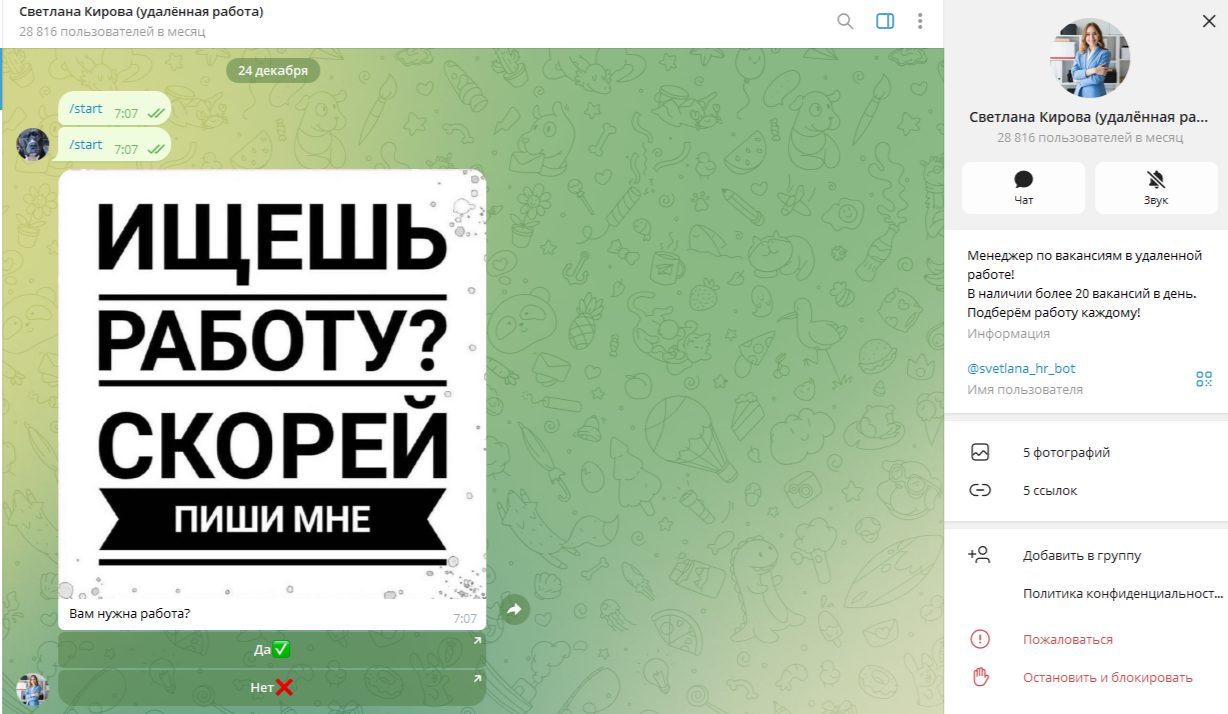 Телеграм-канал «Светлана Кирова удаленная работа»: обзор и анализ деятельности проекта svetlana hr bot